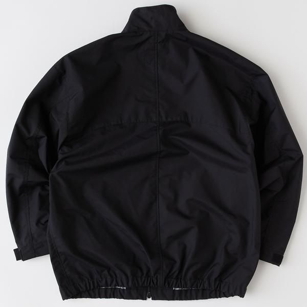 ハリ感のある3レイヤーナイロンを使用したトラックジャケット。肩幅・身幅・袖まわりにゆとりをもたせることでボリューム感のあるリラックススタイルを楽しめる。ラウンドさせた胸/裾の切替えや内側に傾斜させた腰ポケットなど、独特のカッティングを施すことでシンプルながらもアウトドアテイストを取り入れたアイテム。胸の刺繍や裾のブランドネームも程よいアクセントに。