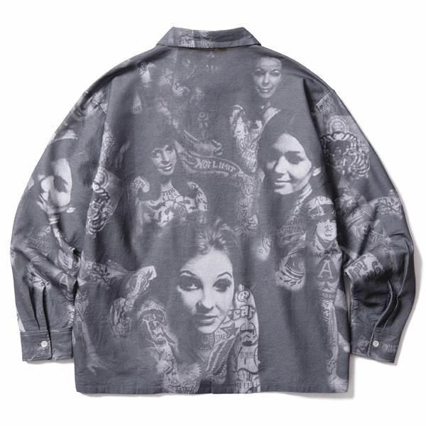 ネル生地に総柄のテキスタイルを施したオープンシャツです。