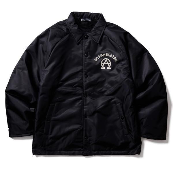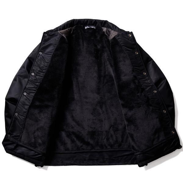 裏地身頃部分はボア仕様、袖口は内リブ仕様、胸元とバックにプリントが施されたコーチジャケットです。