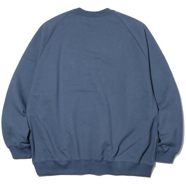 ドライタッチな風合いとほどよい厚みの裏毛クルーネックスウェット。ボックスワイドシルエット。ラグラン袖仕様。左胸にロゴ刺繍入り。