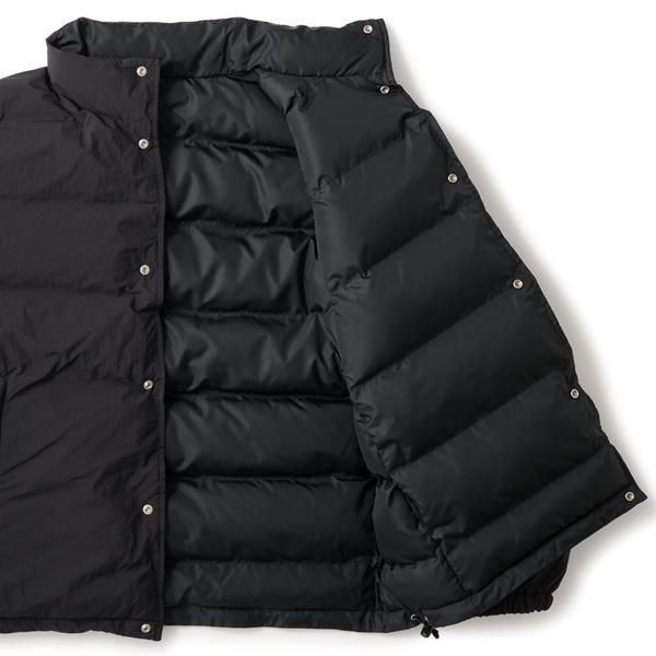 表地には防水加工を施したナイロンタフタを使用。右袖にブランドネーム。リバーシブル面にも防水加工を施したポリエステルリップストップタフタを使用。左胸にブランドネーム。3M社のフェザーレスTHINSULATEの700フィルパワーの中綿入りリバーシブルジャケット。
