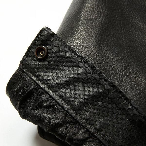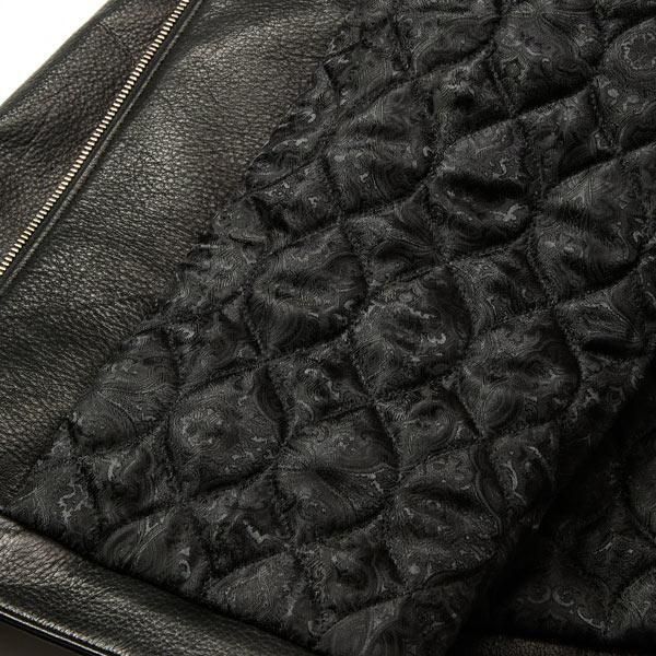 レザースウィングトップ。国産の牛革、クロームレザーを使用した国内生産のレザージャケット。裏地はオリジナルペイズリー柄の中綿キルト、襟裏、袖裏、引き手に蛇革を使用。