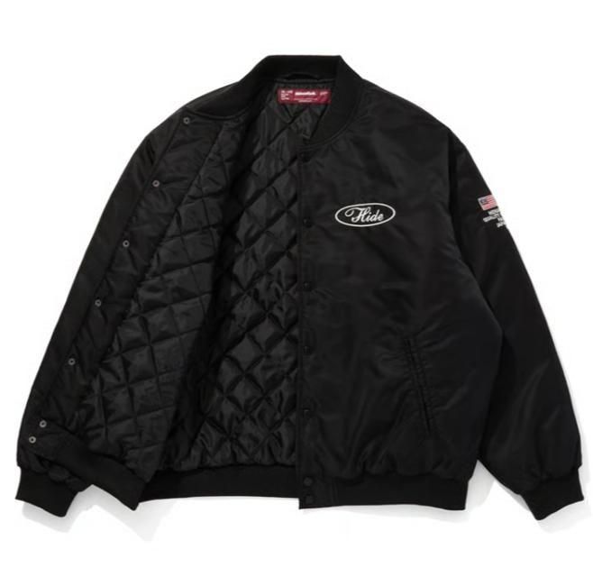 胸元、腕に刺繍。シェルナイロンを使用。裾口・袖口はリブ。裏地中綿キルティング。