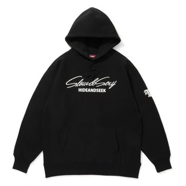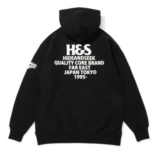 フロント、バック、袖にプリント。サイドリブボディーを使用した裏起毛パーカー。