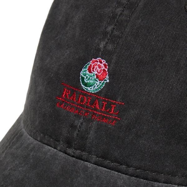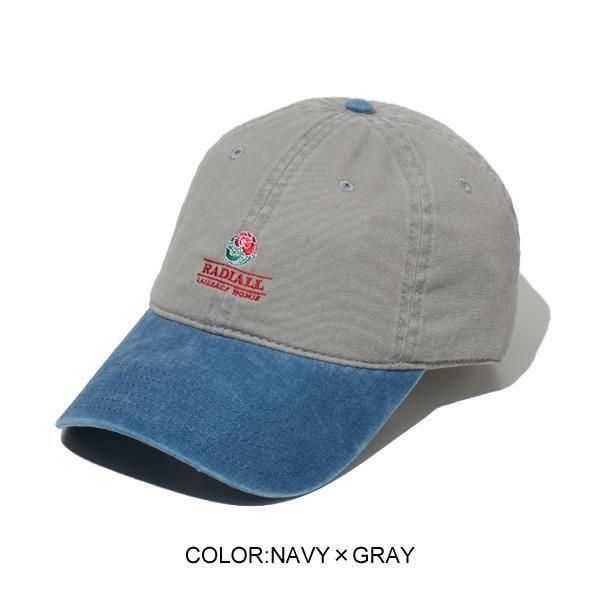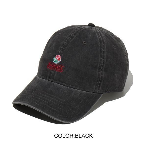 洗いざらした生地感が良い、6パネルのロークラウンキャップ。 バックのベルトバックルでホールド、アジャスト可能。 フロントクラウンに「ROSE」が刺繍で入ります。